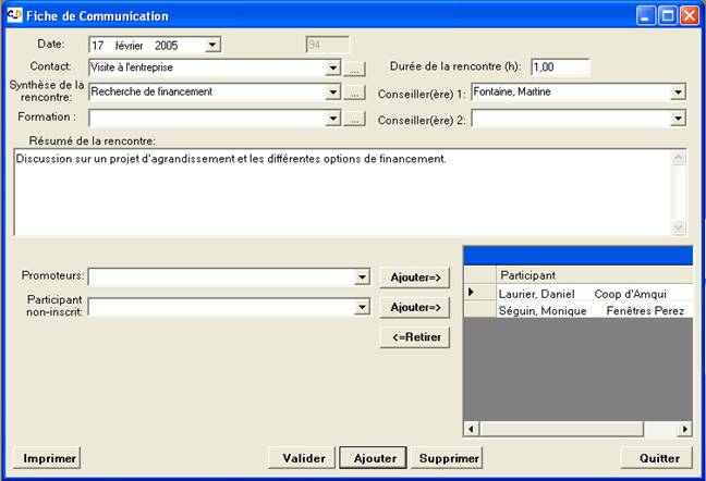 Imprime la fiche de communication
