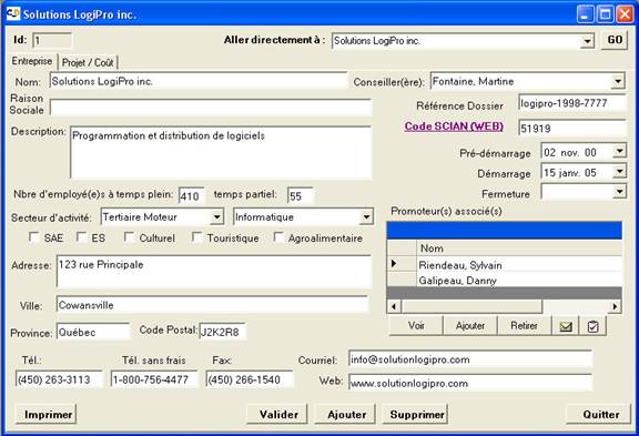 | On retrouve les renseignements relatifs à l'entreprise. |