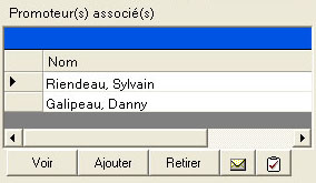 | On peut aussi à partir de ce sous écran VOIR\AJOUTER\ RETIRER les promoteurs à une entreprise. | |